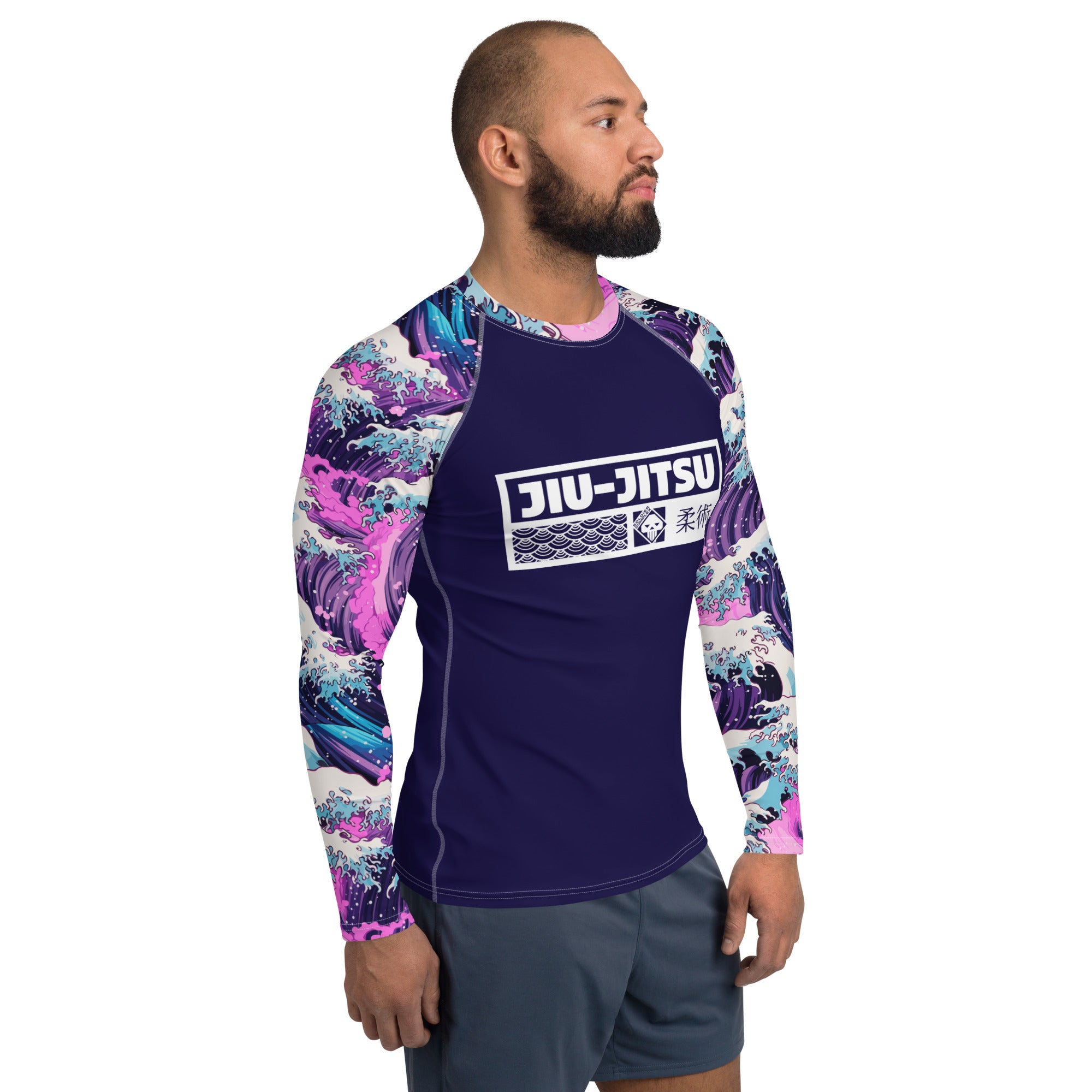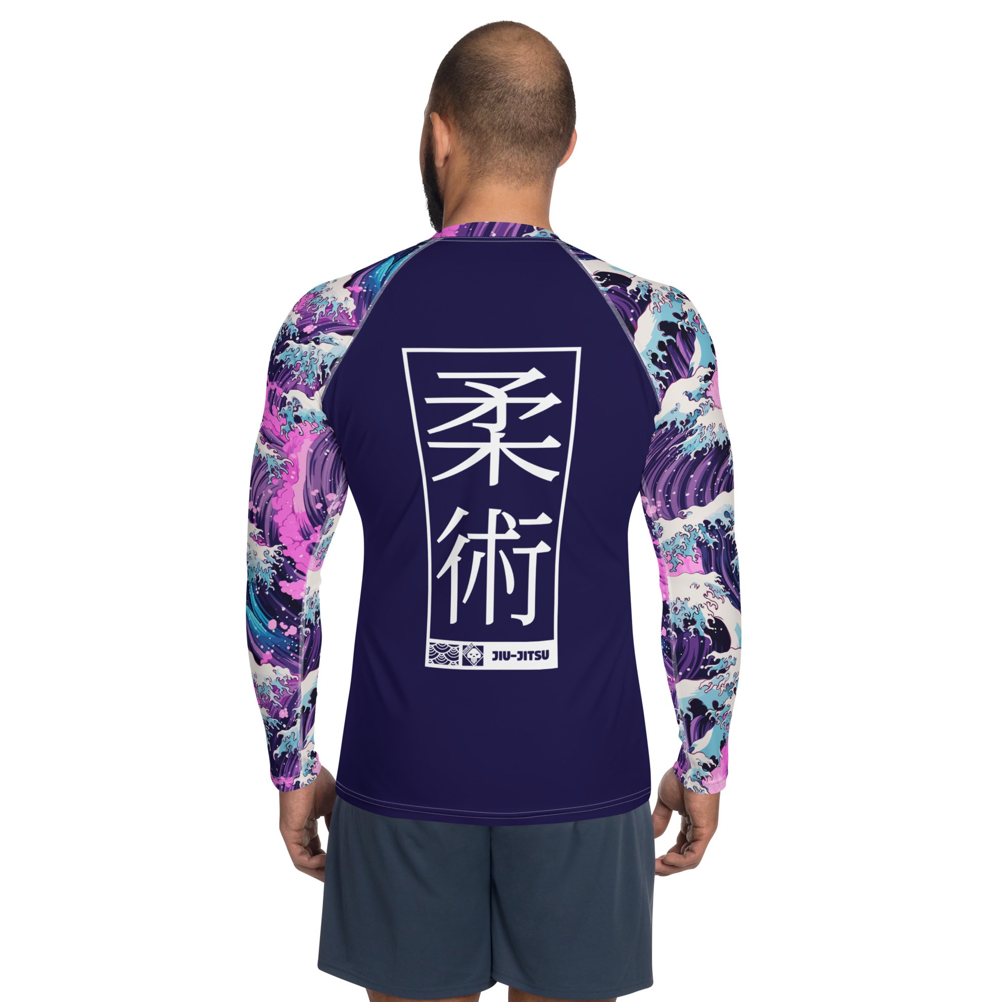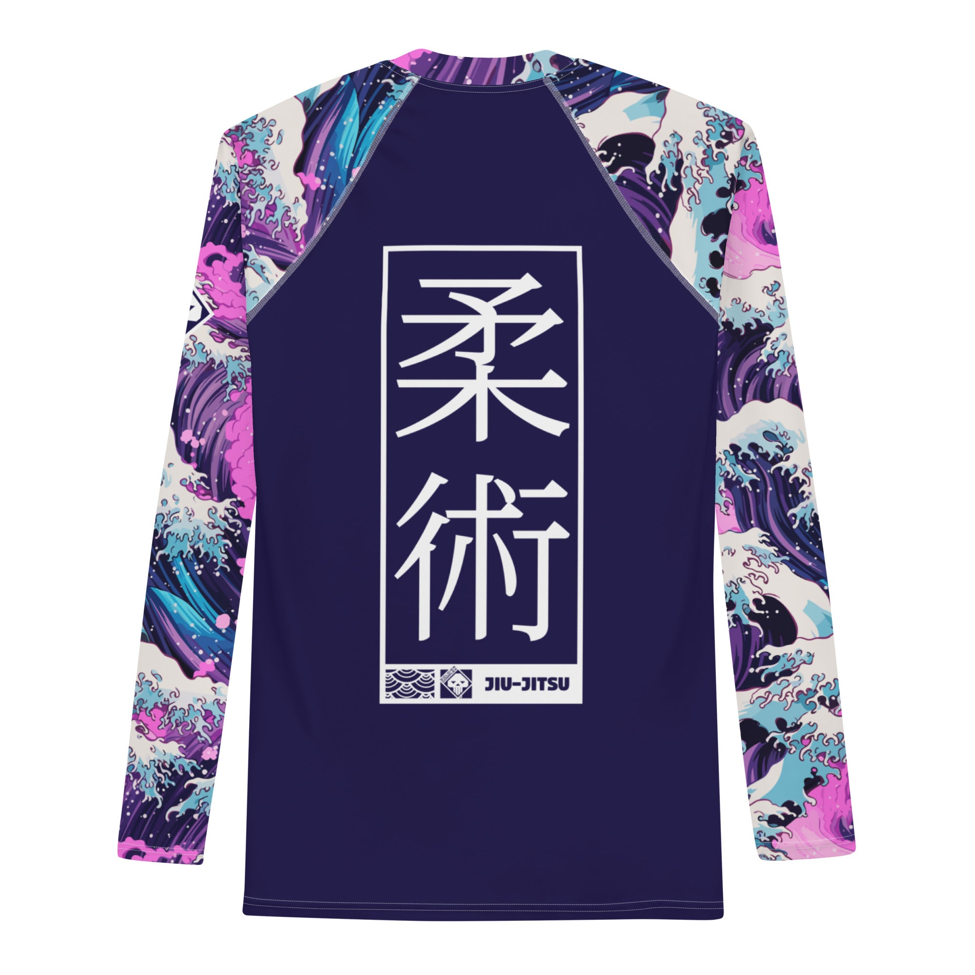 The long‑sleeve rash guard features a sleek, second‑skin compression fit that enhances mobility, muscle support, and endurance during rolls, scrambles, and drilling sessions. Its moisture‑wicking, four‑way stretch fabric keeps you cool under pressure, while reinforced flatlock seams ensure durability and a chafe‑free training experience. The Great Wave and Sakura artwork flows across the torso and sleeves with vivid detail, symbolizing both strength and renewal.