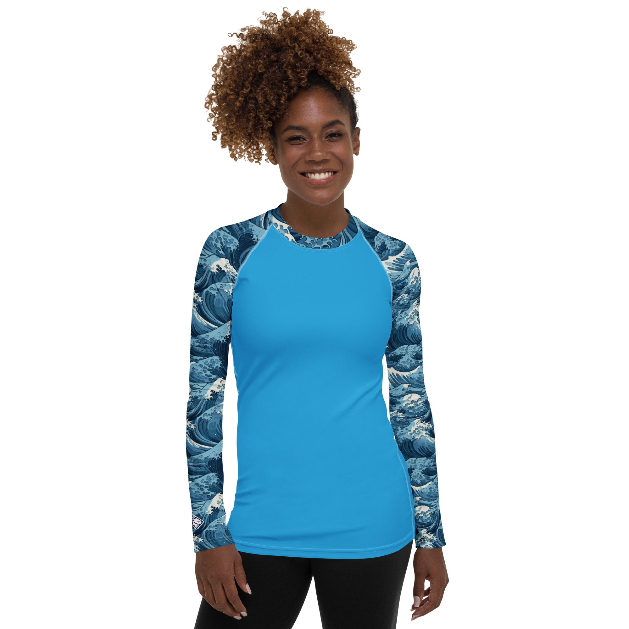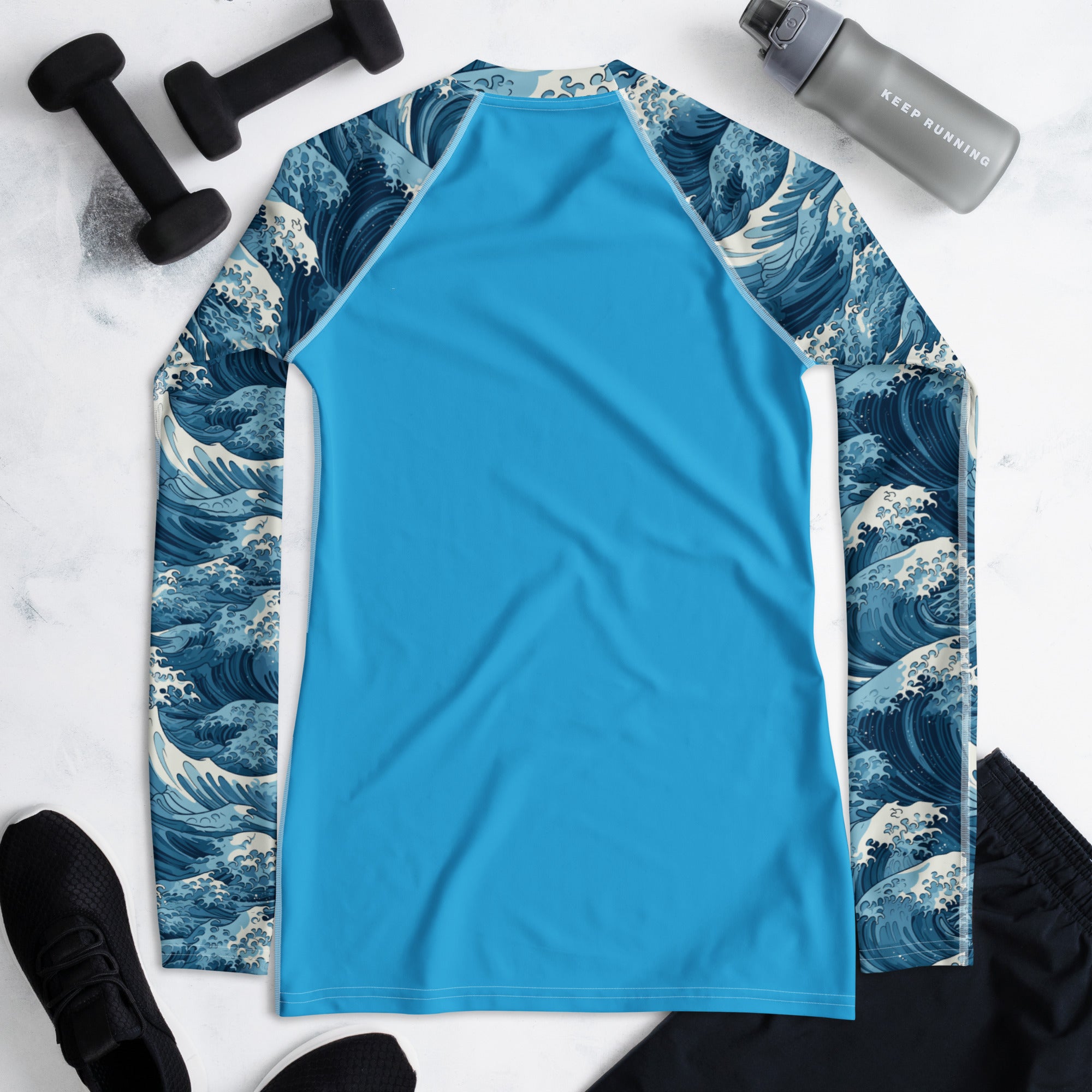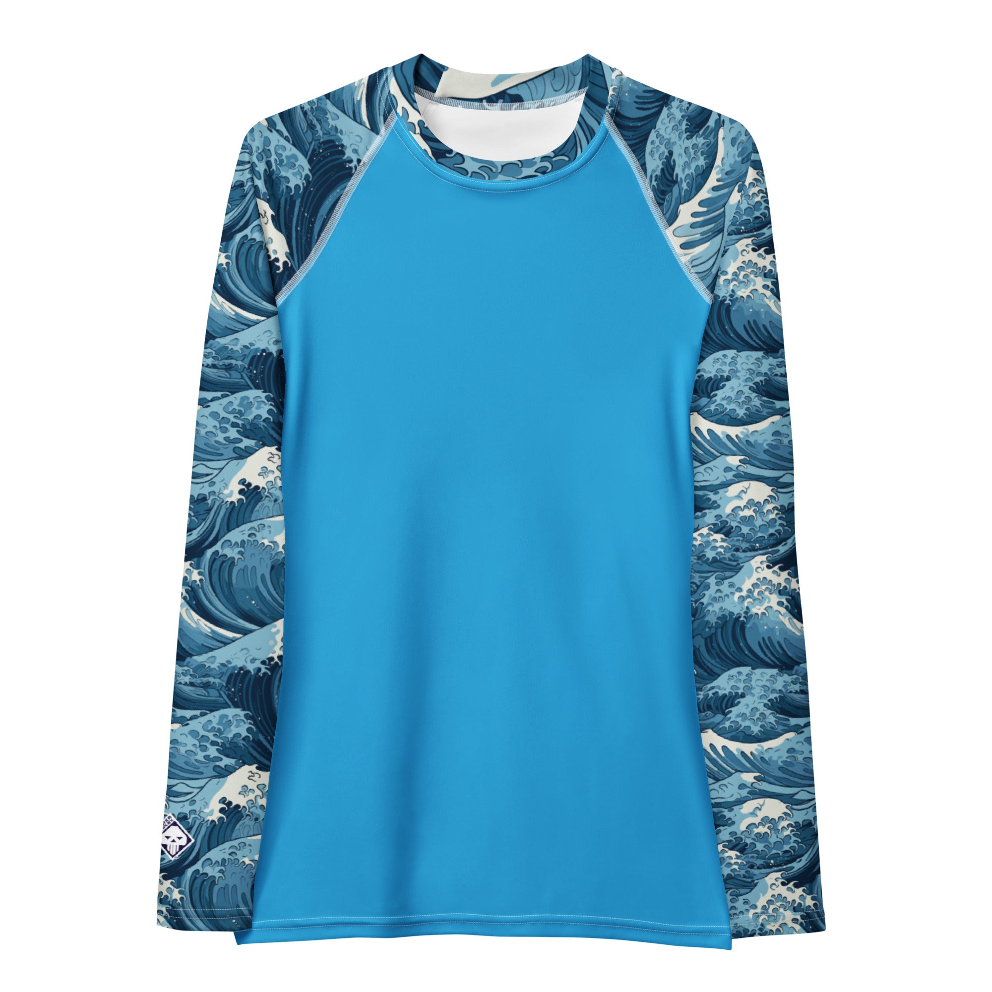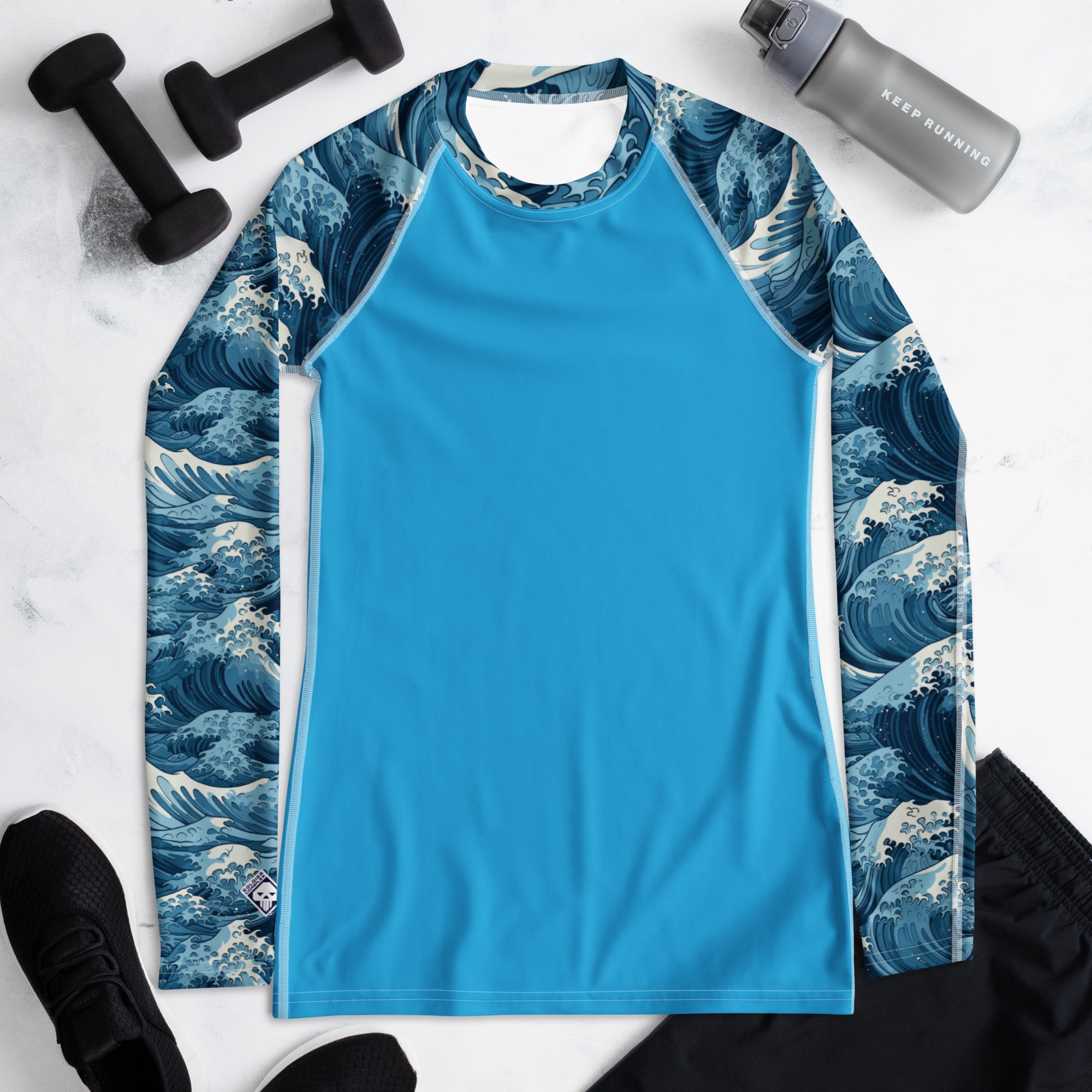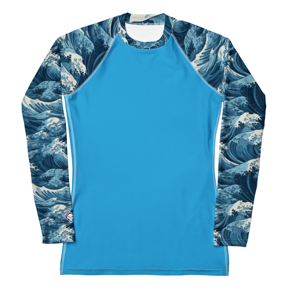 Channel the force of the ocean with the Ocean Surge MotionFit Rash Guard. Engineered for performance, this piece features breathable compression fabric, flatlock seams, and a sleek silhouette that enhances mobility. The dynamic wave artwork brings a sense of motion and depth, making it a statement piece for athletes who train with intention.