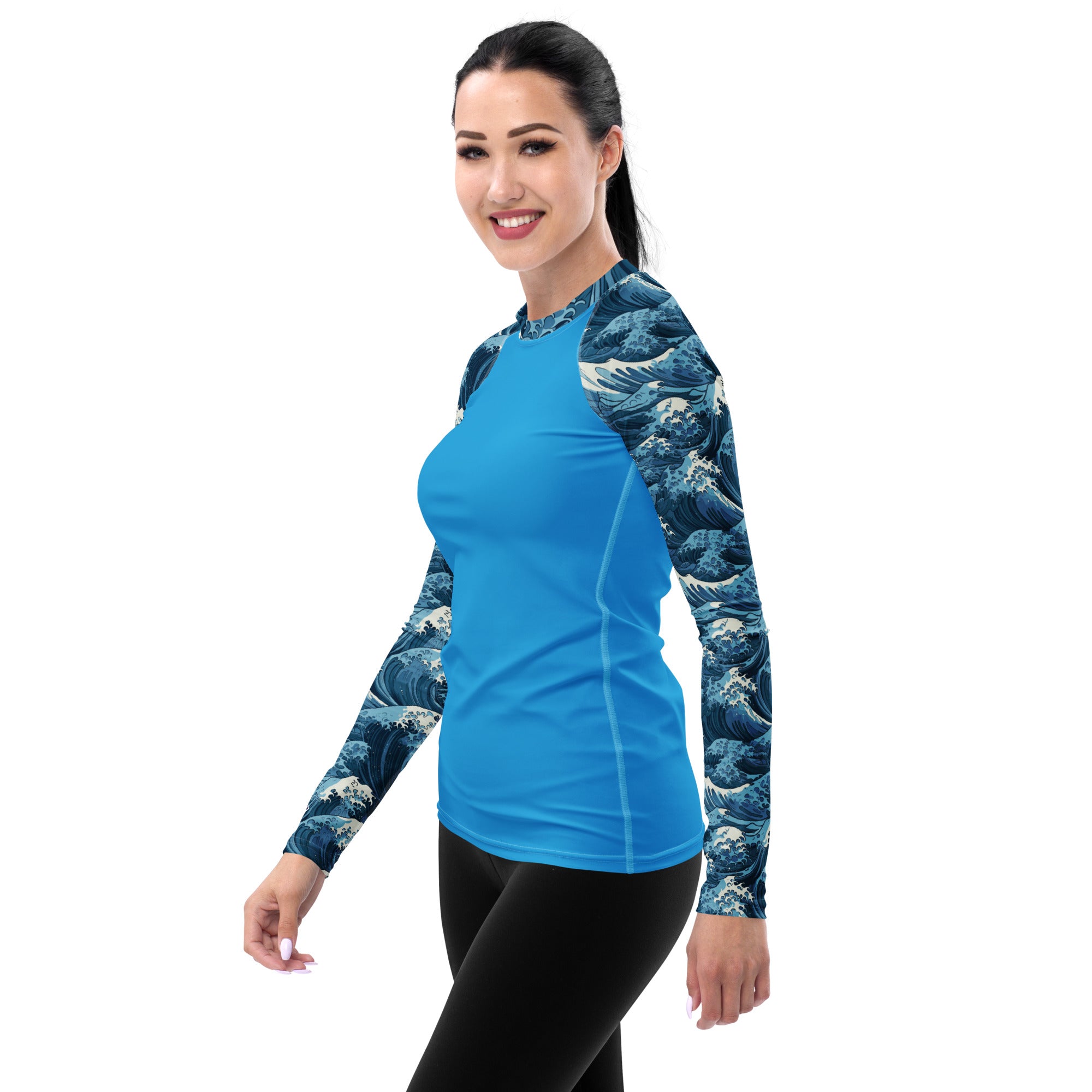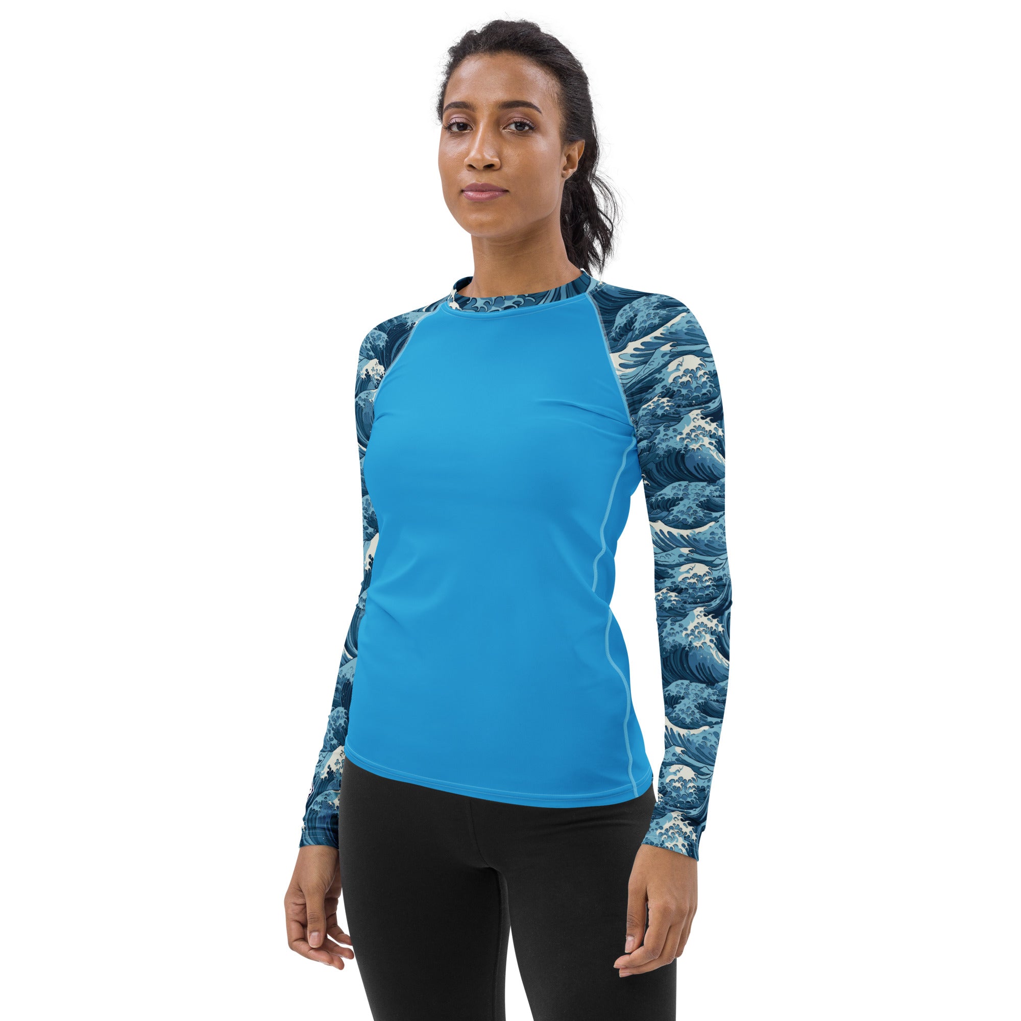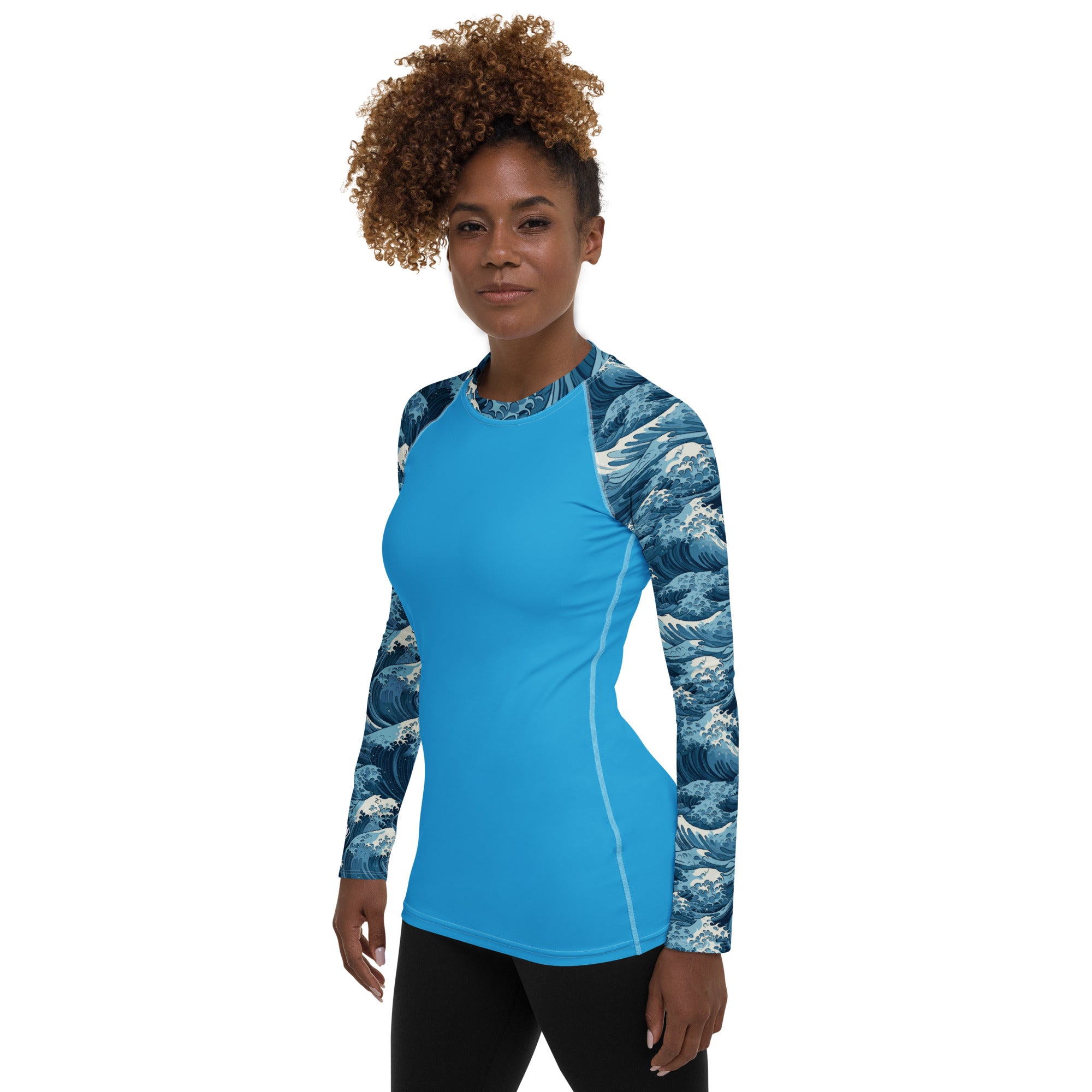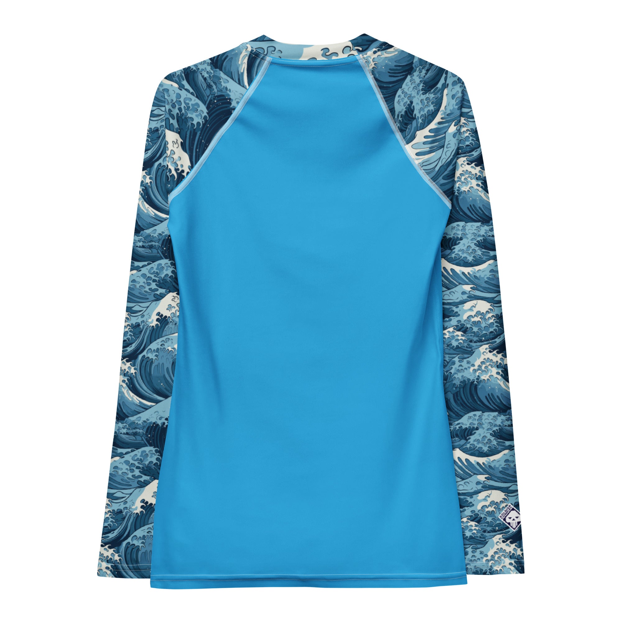 Channel the force of the ocean with the Ocean Surge MotionFit Rash Guard. Engineered for performance, this piece features breathable compression fabric, flatlock seams, and a sleek silhouette that enhances mobility. The dynamic wave artwork brings a sense of motion and depth, making it a statement piece for athletes who train with intention.