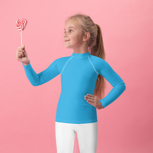 Cool Comfort: Kid's Girls Long Sleeve Rash Guards in Solid Color - Cyan
