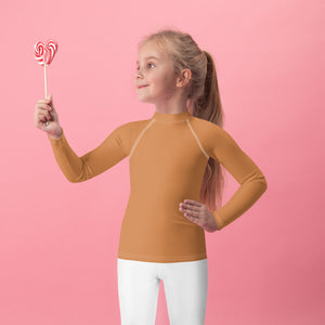 Everyday Elegance: Long Sleeve Rash Guards for Little Girls - Raw Sienna