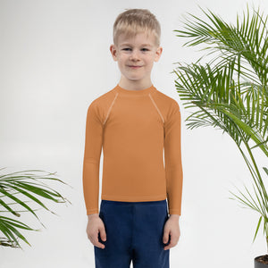 Little Trendsetter: Boys' Solid Color Long Sleeve Rash Guards - Raw Sienna