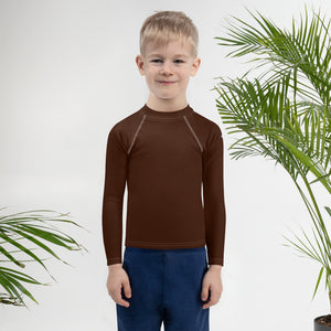 Street-Ready Shield: Long Sleeve Rash Guards for Kids Boys - Chocolate
