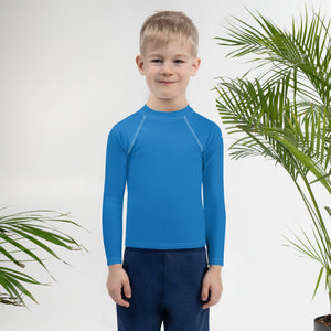 Cool Comfort: Kid's Long Sleeve Rash Guards in Solid Color - Azul