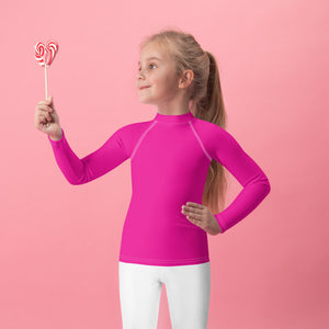 Sunshine Style: Girls' Solid Color Long Sleeve Rash Guards - Hollywood Cerise