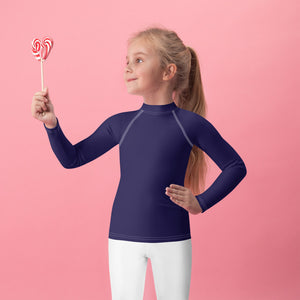 Playful Protection: Kid's Solid Color Rash Guards for Girls - Midnight Blue