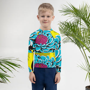 Boy's Pop Art BJJ Long Sleeve Rash Guards - Roy Lichtenstein Inspired Dahlia Print 001