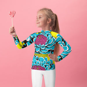 Girl's Pop Art BJJ Long Sleeve Rash Guards - Roy Lichtenstein Inspired Dahlia Print 001
