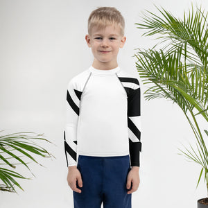 Kid's Boys Long Sleeve BJJ Rash Guard - Houndstooth 001 Blanc