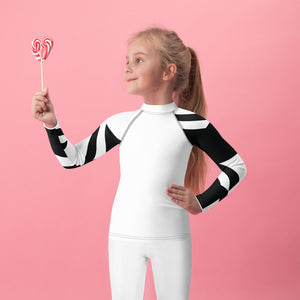 Kid's Girls Long Sleeve BJJ Rash Guard - Houndstooth 001 Blanc