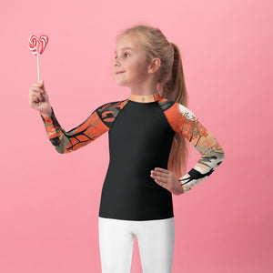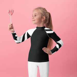 Kid's Girls Long Sleeve BJJ Rash Guard - Houndstooth 001 Noir